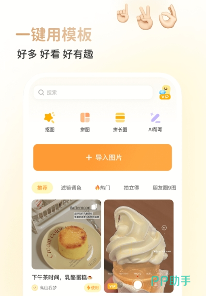 现实生活当中有很多人他们想要发表图片,但是又感觉太多,让人反感,其实想要把多张图片集成一张,也是可以的,通过app就能编辑照片以及视频,同时也可以帮助用户创造更加有趣的图文笔记,让用户体验到更高效的便捷效果。海量模板可以直接套用,让一键p图变得更加简单。内部设置了众多海报、如果不会制作的,可以用这种模板,让制作图片不再那么繁琐。