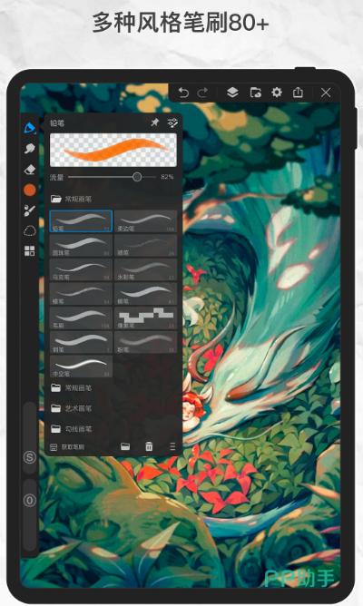 各种各样的功能辅助用户做出好看的图片,拥有高仿真画笔,能模拟真实的手绘效果,除了可创作一些好看的图片,也可应用到工作作图中。