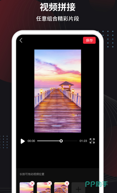 支持将多张照片或者是多个视频小片段合并到一个视频中,能设计出色的转场效果,可随意的在视频中添加各种特效字幕,通过滤镜让视频的画面感更加舒适。如果对自己操作不满意的步骤,也可撤回重新操作,各种各样的工具来辅助你制作出非常出色的mv。