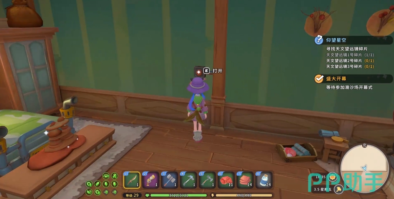 接下来玩家可前往梅丁家里继续任务,也可先去忙当天的工作,等所有事情都弄好后再去走剧情。但要注意玩家最好在看到梅丁的当天前往他家,不要等第二天再去。来到梅丁的家后(地图上有指示),玩家会发现梅丁将自己关在柜子里,不敢与玩家面对面。