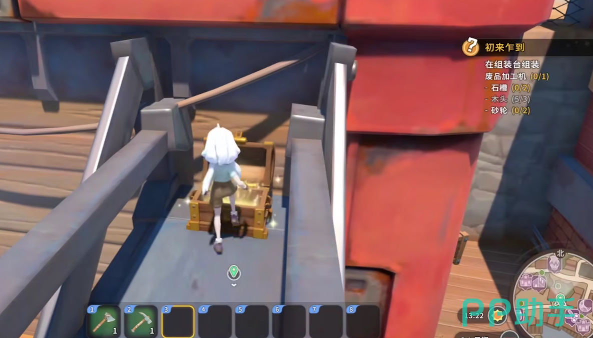 首先,玩家需要打开地图,找到沙石镇的建筑公司,在建筑公司的东南面的一棵大树上,就可以看到屋顶处设置的宝箱,玩家在这里不能够骑坐骑,需通过跳跃和奔跑来进入到围墙上方打开宝箱,在取得这个宝箱之前,玩家需要率先完全游戏内的新手任务,否则是无法解锁【建筑公司】后面的围墙区域的,建筑公司附近的宝箱中可以获得【骨质项链】,这个道具是前期比较重要的装备。