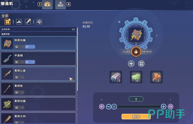 时光剑的制作需要使用到初级锻造机,这是沙石镇中常见的一种制作工具,适用于各种金属制武器的锻造。