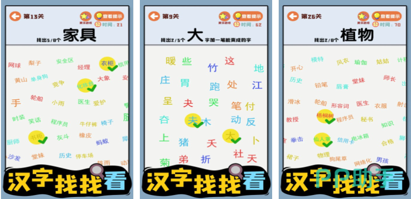 在字里找字的游戏往往对玩家的专注力和观察力是一种考验,面对密密麻麻的数字想找出任务标注的目标谈何容易,那么和字找出12个字游戏前五名情况怎么样?下文这几款字里找字的手游可玩性极高,多元化的关卡无疑会给玩家普及一些汉字的知识,觉得自己视力较好的小伙伴不妨挑战一下。