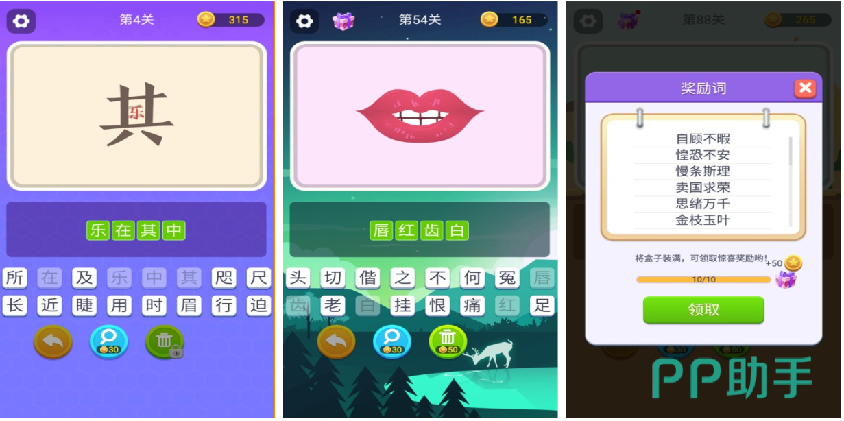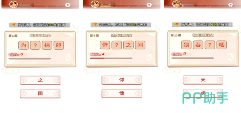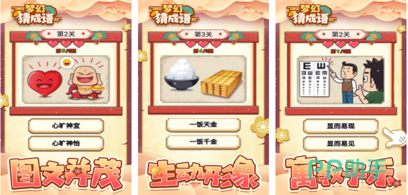梦幻猜成语是款休闲益智类型的成语猜谜类游戏,内设超多的成语关卡无疑会让玩家了解记住各种各样的成语,寓教于乐的游戏模式值得所有求知欲强的玩家体验,生动的图片和选择题一般的猜谜方式使人乐在其中,通过关卡中的图片玩家可以了解不同成语的含义,不断挑战各种关卡可以加深玩家对成语知识的印象,图文并茂的表达方式具有极高的辨识度,多人联机的竞技类解谜玩法也为本作润色不少。