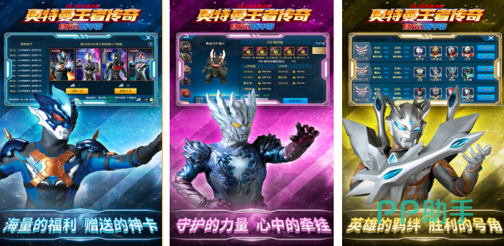 《奥特曼王者传奇》是一款由奥特曼特摄剧改编而成的动作卡牌手游,拥有超多不同形态的奥特曼,有迪迦赛文等奥特曼,全部都聚集在此。还原昔日场景,在世界降临怪兽,打败黑暗怪兽,重新获取文明与希望,拯救整个世界。你可以在这里创造奇迹,成为世界英雄。喜欢奥特曼的小朋友们快来试试吧,和英雄产生羁绊,增加自己的守护力量,保护好所有的人类。