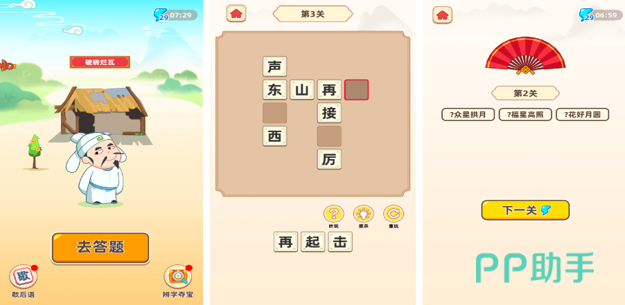 《成语猜猜猜》这款也非常值得上手,特别适合玩家在日常的休闲时光当中进行体验。如果你的成语知识量比较匮乏,也可以通过它的提示按钮来解锁答案。无论是小白还是一些游戏老玩家在这款游戏中都不会遇到太难的卡关问题,让你真正做到一站到底,闯关更加顺利,游戏结束后还会对游戏当中出现的成语进行解释,为大家开启了一个高效学习成语的便捷小途径,在欢乐氛围里不知不觉学会更多知识。