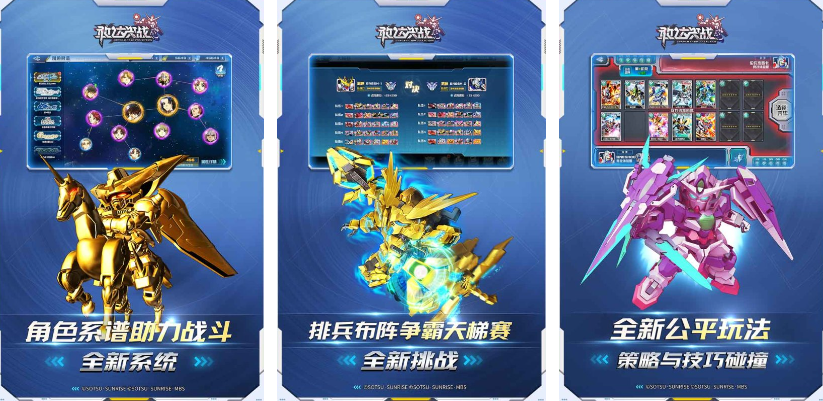 《SD敢达强袭战线》是3d类型的机甲乱斗游戏,根据动漫改编,里面的机甲以及机师的外观全部100%还原,剧情也做到基本还原,有战队养成、远征和ace等玩法,玩家在游戏中扮演的是机师,需要找到合适的机体才能达到人机合一。每场战斗中可以上线三个机体,而大家控制的却只有一个,所以玩的时候还应该注意另外两个被ai控制的机体,及时做出调整才可以胜利。