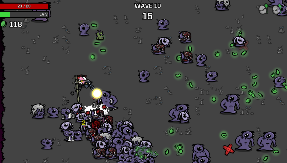 土豆兄弟是款玩起来相当解压爽快的肉鸽射击类游戏,玩家将扮演一名土豆战士在异星球击败源源不断的外星人怪物,怪物死亡后会掉落绿色的能量以供玩家收集,收集到足够多的能量即可提升等级并选择不同的天赋技能。这款肉鸽射击类游戏节奏明快而且过程非常解压,喜欢无脑刷刷刷的小伙伴不要错过这款佳作。