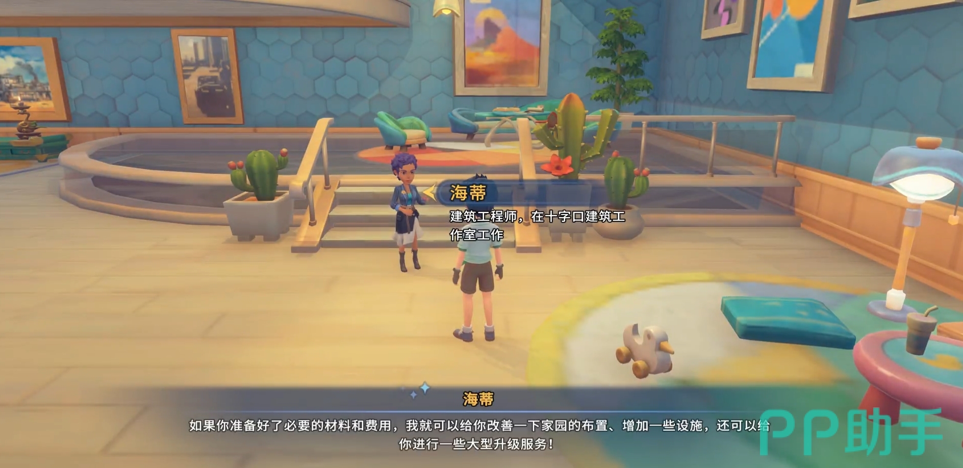 要是有玩家们不知道怎么装修家园,可查看建筑公司门口桌子上的装修目录,可看到风格各异装修模板和建筑技巧,能够帮助伙伴们建设出独一无二的家园。而且各种装修材料的商铺都在公司大厅之中,可供玩家们免费参观和自由购买。