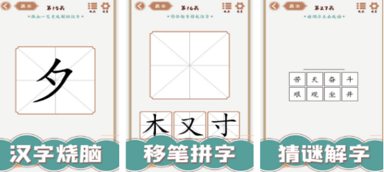 这款与汉字有关的益智游戏非常出色,也有很多玩家都已加入其中,整体的可玩性较高,可通过寻找偏旁的模式组成全新的汉字,也可通过移动笔画移动偏旁来变成全新文字。我们都知道汉字的数量较多,对于刚刚入门的小学生来说想要完全记忆并不是一件容易的事情,但让他们使用这款游戏加深印象的同时,也能拥有灵活多变的头脑。