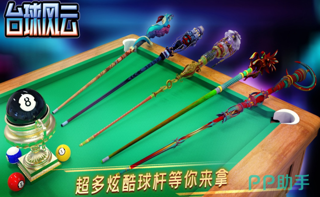 台球风云是款支持多个玩家同台竞技的3D打台球游戏,你可以自由切换3D视角了解桌面上的局势变化,优异的打球手感以及视觉效果是本作的最大亮点,独创的物理引擎也将打球的过程营造的跟真实,尊重物理规律的摩擦运动表现也让本作显得更加硬核,超多炫酷的球杆和桌布让游戏画面更有观赏性哦。