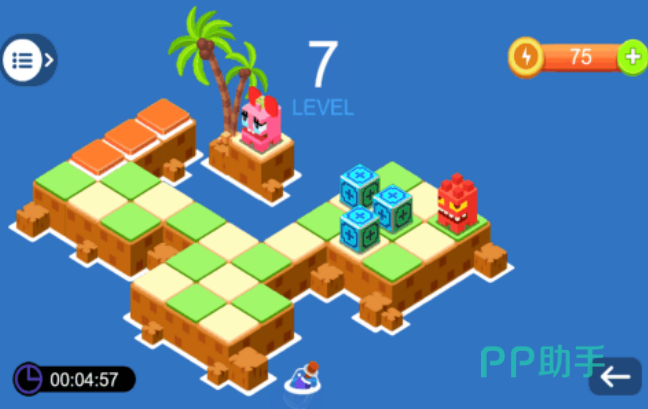 市面上所有推箱子游戏的设定都是一样的,在关卡里会有数量若干的箱子,玩家需要通过调整位置,推动这些箱子到达指定的地方,每一关都会有不同的箱子数量,把这些箱子顺利归位之后就可以进入到下一关,这个推箱子游戏采用的也是同样的设定,只不过是更加立体的画面设置,想挑战自己脑力的可以来尝试一下游戏。