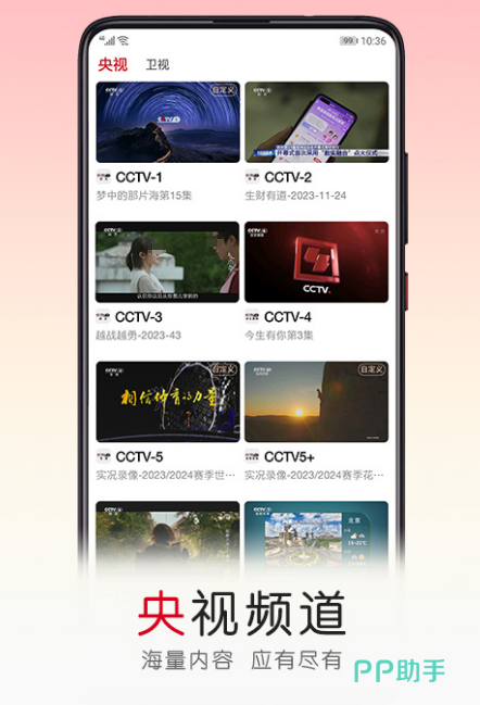 如果您对央视这些频道的节目比较感兴趣,比如喜欢看cctv1的新闻、或者是想要看cctv5的体育、以及从cctv6看电影、又或者是家里有孩子喜欢看cctv14少儿频道,就一定要下载这款软件。当然想看卫视的节目也能满足大家的需求,还可看海外的影视节目。