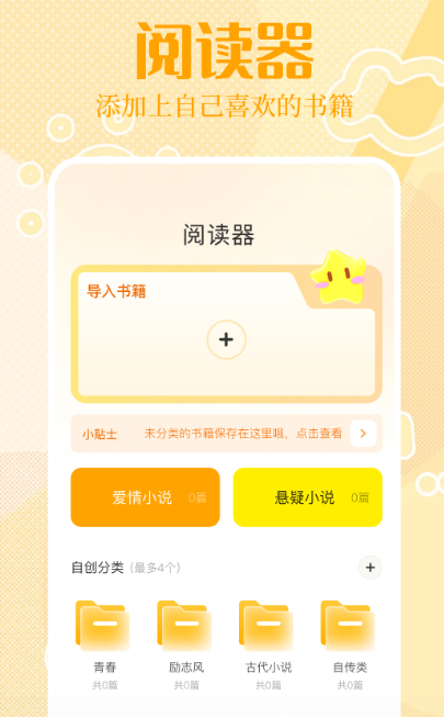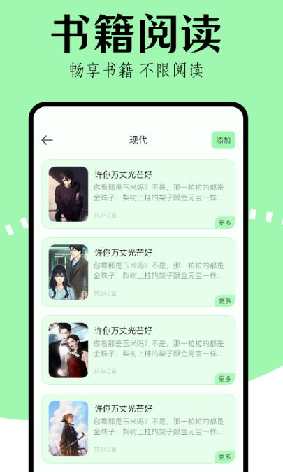 作为一款便捷操作的掌上阅读器,可以让每个用户享受非常好的阅读体验,因为应用当中有很多好看的书籍,并不会有任何的限制,比如现代题材的小说就有很多,通过添加以后自己就能随时随地观看呢。在书籍当中也有很多的分类,比如惊悚、古风、穿越的,可根据自己喜欢的分类来选择适合的作品,给用户带来很好的阅读享受。