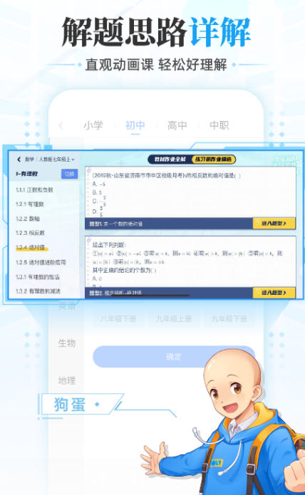 初中对于每个学生来说也是非常重要的阶段,为了减轻家长孩子的负担,可通过下载这款应用来帮助孩子学习初中的全部学科,包括数学知识公式内容,同时还有应用题等。即使在做题的时候没有任何的思路,不知道怎样正确做题,都可通过正确的辅导方法让每个学生更好地进行预习以及复习,让知识点进行巩固,考试的时候更容易提分。