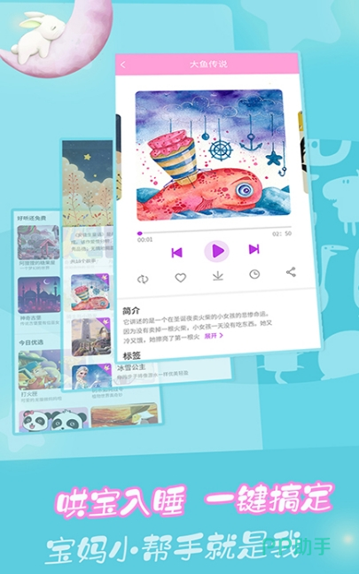 想要快速的哄宝宝入睡,这么多年以来有很多人总结出了一种方法,就是给孩子讲故事,对于宝妈来说能想到的故事都是有限的,如果长时间给孩子讲一个故事,孩子就会感觉枯燥乏味,这时就可以下载这个app,软件里面集成了很多让宝宝感兴趣的故事,可听故事、讲故事,让孩子迅速的入睡,还能掌握相关的知识,能启蒙他们的大脑,宝妈们赶快下载吧。