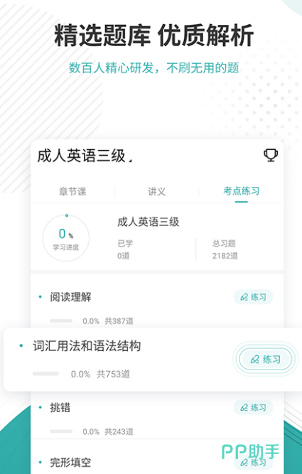 作为一款学位英语学员考证必备的神器,精心准备了考试配套题库,内容丰富全面,还有历年来的真题以及易错题,对冲刺学习有很大的帮助,诸多考点,助力用户快速提高考试的通过率。