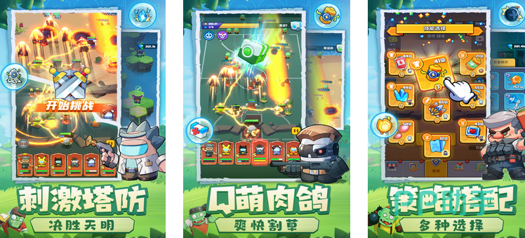 在随机生成的卡通风格的地图上,防御塔数量众多,类型各不相同,除了单人和多人塔防模式外,玩家可前往挑衅模式主动出击。地图的地形各不相同,玩家利用地形优势进行射击,并且还可以进行爬塔闯关。在活动方面,玩家既可以成为超级英雄进行力挽狂澜,还可以在尸潮来袭的末日决战中大显身手。
