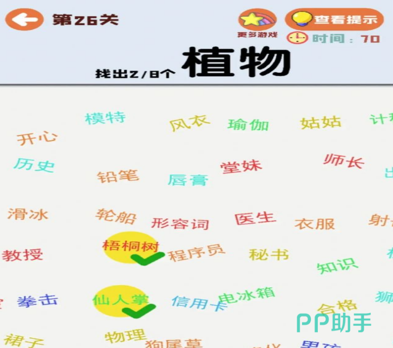 《汉字找找看》这款游戏涵盖了各种内容,你要在规定时间点击要求的字词,游戏会出现倒计时的环节来提示玩家,当关卡难度提升,你的反应需要迅速,在这款游戏你可以锻炼自己的字词能力以及眼力。当你不知道哪里还有你没找到的词语的时候你还可以使用提示哦。游戏有超级多的关卡等着你来挖掘。