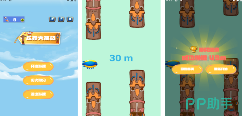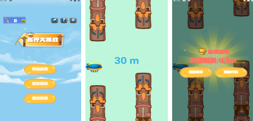 飞机和飞艇一样都可以在高空飞行,飞行大挑战这个游戏就把飞行玩法变得更有挑战性,在游戏里可以通过面部识别控制飞艇的上下移动,在飞行过程中会有很多障碍物交织错落出现在场景里,需要灵敏的控制飞艇,躲过这些障碍物,玩家在游戏里的飞行米数会是最终的成绩。