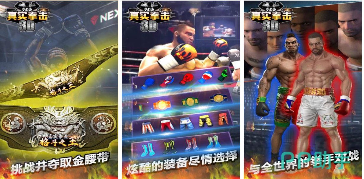 真实拳击对决是款支持双人联机的拳击主题对打游戏,一身肌肉的壮汉形象看上去就极具力量感,操控这些高大威武的拳击手进行对抗的游戏内容也十分刺激,超多酷炫的装备任由玩家选择搭配,十余种不同量级的拳击比赛也期待玩家们参加,公平的一对一战斗系统与真实拳击比赛如出一辙,全3D的建模技术将真实的拳击擂台呈现了出来。
