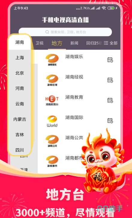 进入首页就能看到这款软件的优势,节目单介绍的非常详细,由央视、卫视两大板块,如果想看央视的节目,直接点击央视就会推出相应的频道。点击卫视也会推出相应的频道,和在电视上追剧一样,能与电视播放同步。