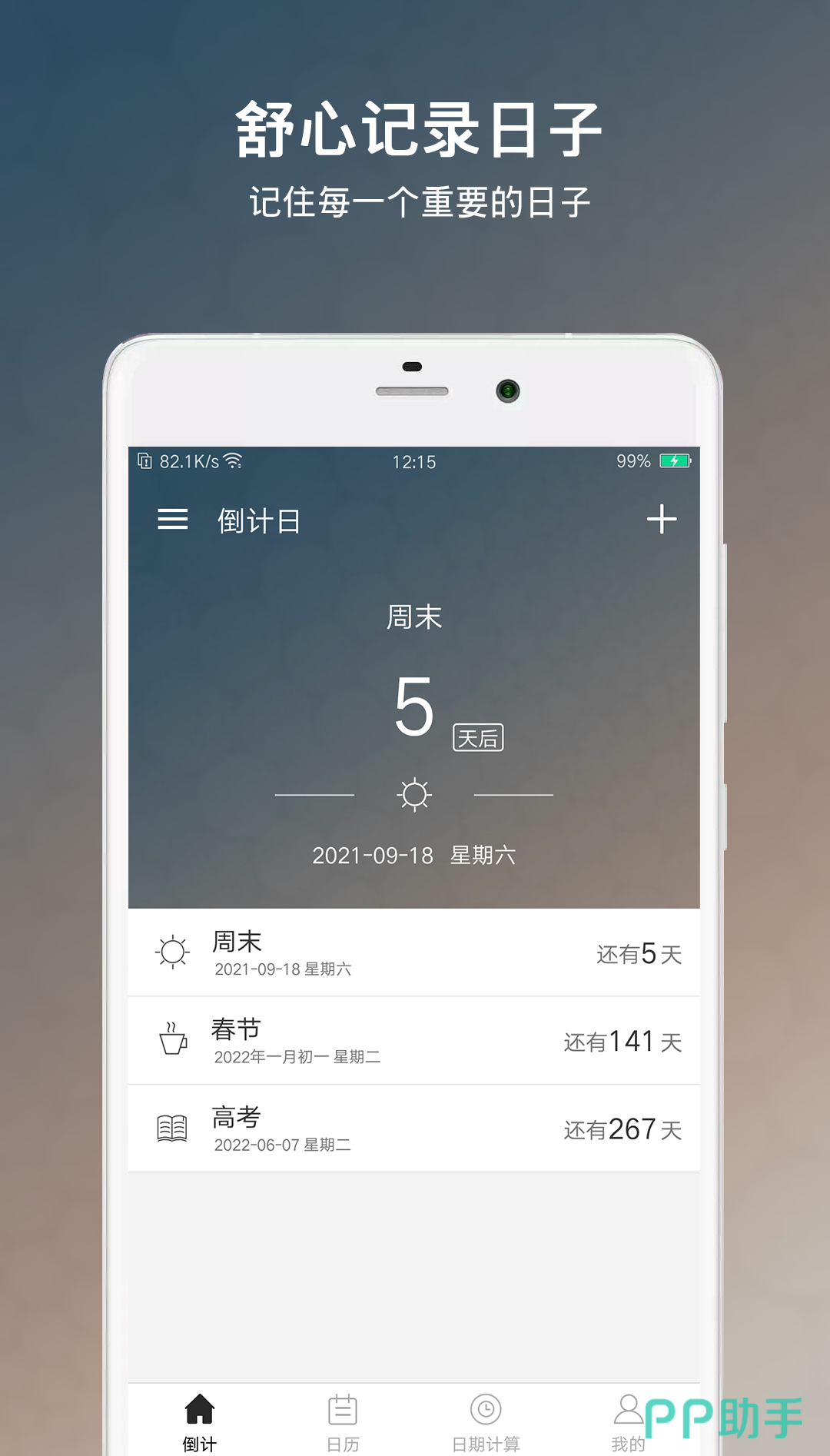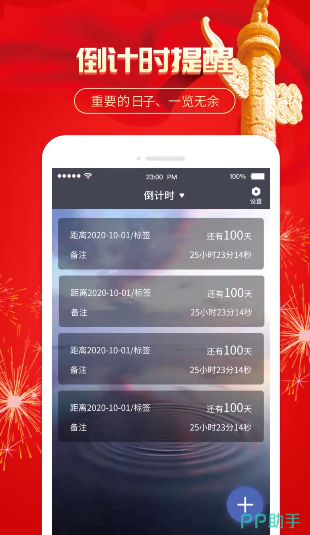倒计时软件帮助大家记录日子当中的美好和重要事件,设置提醒,到了日子和时间就会智能提醒,这样你就不会错过重要的日子和事项了,设置的各种数据都可以云备份。