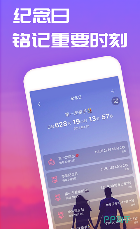 帮助情侣们和其他小伙伴记录重要的时间和日子,设置好日子提醒,这样就不会错过每一个精彩和重要的时刻,个进化的操作和装扮,不同的日子和不同的时刻有不一样的展示。