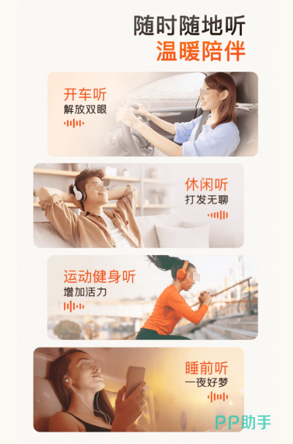 享受高清音质,可阅读海量资源,烦躁的时候,或者是睡前都能起到解压的作用,还可听一些热门的小说以及慢画,各种精品内容伴你入睡,让你有一个甜蜜的睡眠。超多经典的故事,可看二次元以及段子手的直播,每天利用做家务的时间就能听到很多有趣的书籍。