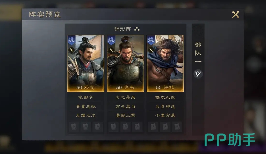 推荐大家可去选择的阵容搭配为邓艾、典韦和许褚。