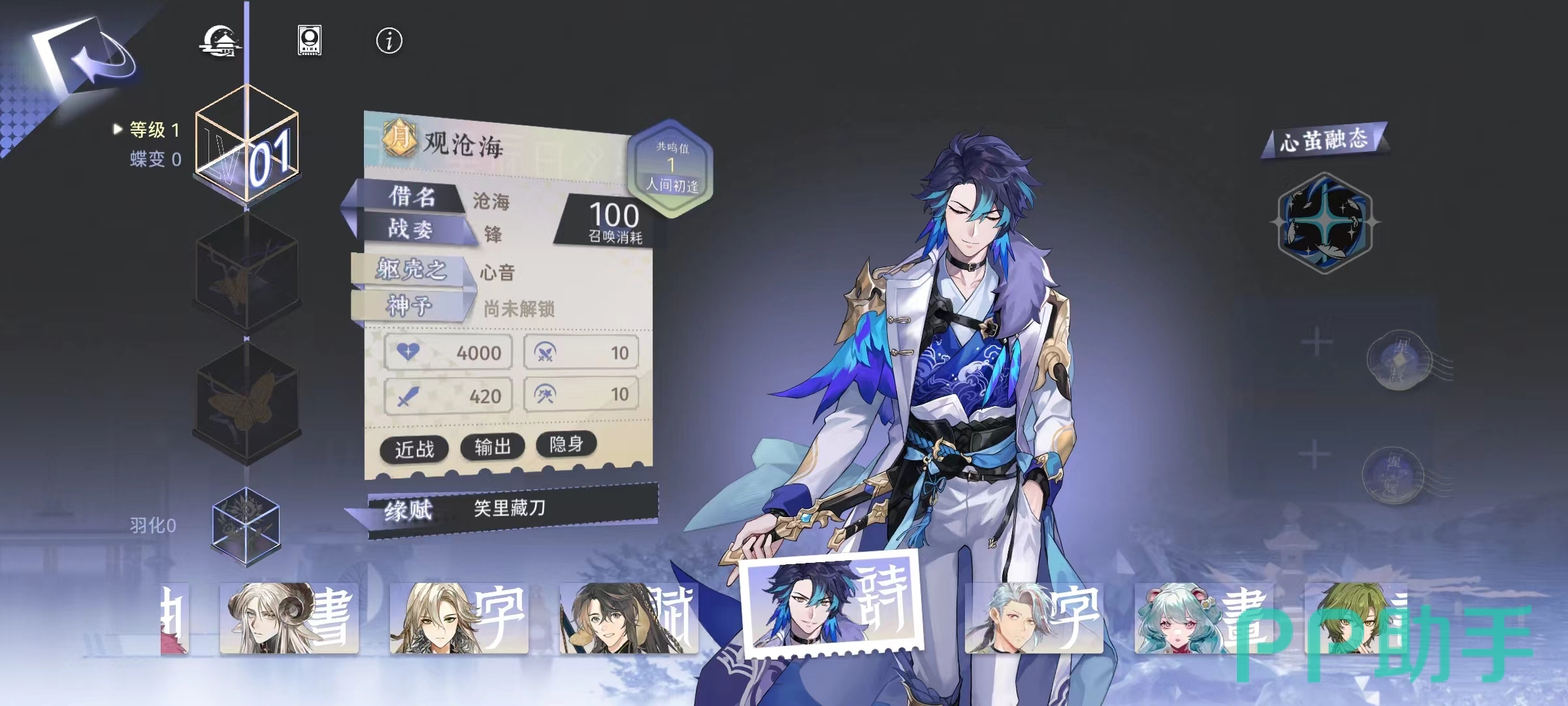 现在大家就很清楚咏月风雅观沧海怎么样了吧,该角色拥有游戏中非常少见的隐身效果,在其他状态的作用下还具有回血能力,是一名在输出以及特效方面都很出色的角色,当达到最后的心茧融态后,更是可以成为场上令敌人非常头疼的存在。