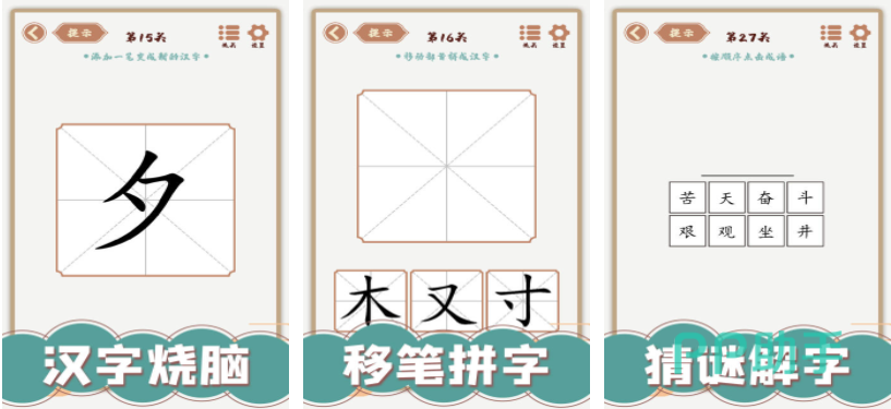 众所周知华夏的汉字基本上都是由偏旁部首部分组成的,将不同的偏旁部首拆散重组甚至能变成其他的汉字,那么好玩的偏旁组字游戏有哪些?下文这几款组字游戏能让玩家了解汉字的博大精深,休闲有趣的氛围加上寓教于乐的玩法值得玩家慢慢尝试,想了解汉字知识的朋友下载这些偏旁组字游戏吧。