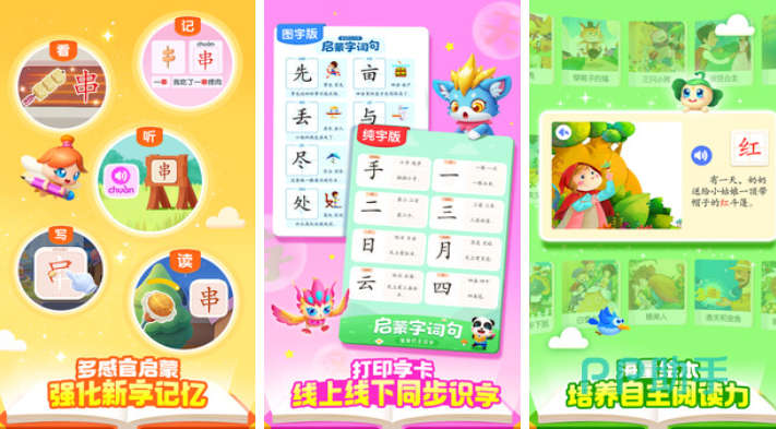 这款给小宝宝打造的汉字知识学习类游戏质量绝佳,生动有趣的CG动画便于吸引孩子们的注意力,各种可爱的小动物也会在游戏中教导玩家如何快速记住汉字,多感官的启蒙类玩法让小朋友们受益匪浅,海量的绘本足以锻炼孩子们自主阅读的能力,各种常见汉字和罕见的生僻字也让小朋友们印象深刻。
