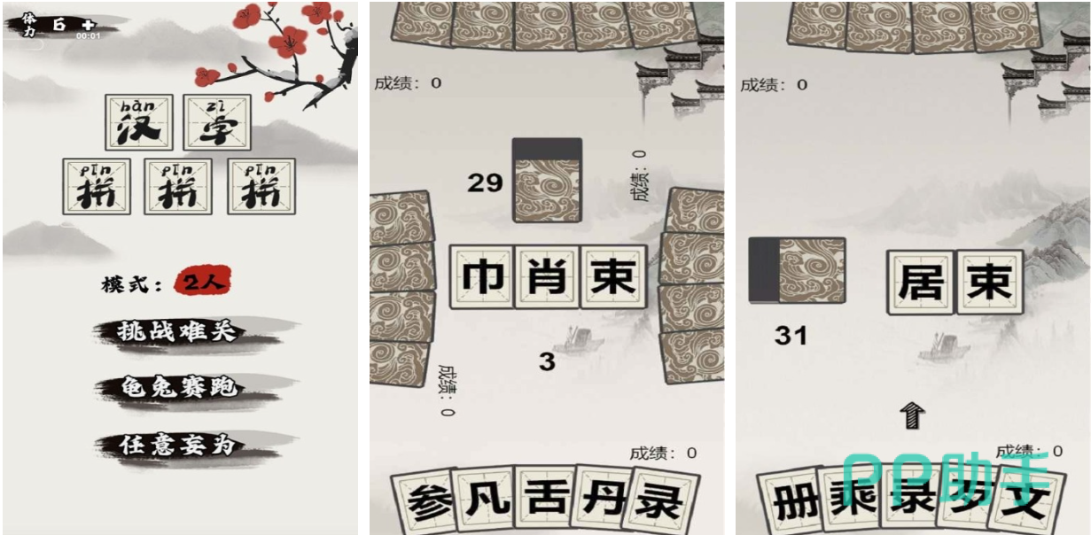 爱上拼汉字是款利用偏旁部首进行对战的组字类型游戏,将汉字知识和卡牌对抗玩法相组合的游戏内容非常有意思,在魔性搞笑的氛围中玩家可以记住超多的偏旁部首知识哦。这款独特的文字类游戏采用了复古的水墨画风,特色鲜明的大牌玩法也增加了本作的可玩性,三种不同难度的汉字知识模式期待着大家挑战。