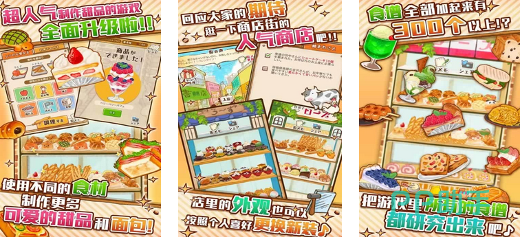 拥有一家甜品店是什么样的体验呢?在橱窗设计上,玩家可根据个人喜好进行更改,比如更换玻璃的颜色。在食材方面,玩家可以制作新种类的面包,并且在餐前小吃种类上加入个人的喜爱,所以整个食谱的美食数量超过七百个。玩家还可以制作饮品,大多数是果汁,在水果的选择方面,以彩色水果为主。