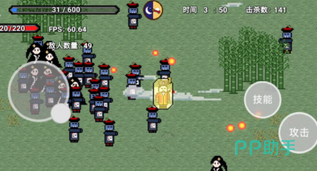 这是款专门给割草游戏爱好者准备的道士僵尸主题休闲游戏,玩家扮演身穿道袍的道士与海量的幽灵僵尸战斗,酣畅淋漓的割草战斗体验给恐怖游戏迷带来了异样的快感,随着等级提升玩家可以解锁不同的辟邪道具提高战力,像素卡通画风将僵尸和幽灵形象塑造的更加可爱,极具亲和力的画面与酷炫的视觉特效令人沉迷。