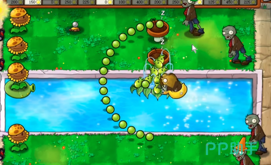 在带上了这个毁灭水草后就可以开局了,在开局后大家还是需要按玩14关时一样去放置植物,也就是开局的500阳光要给450给水池豌豆,需要给这豌豆先种上,然后再去等50阳光。