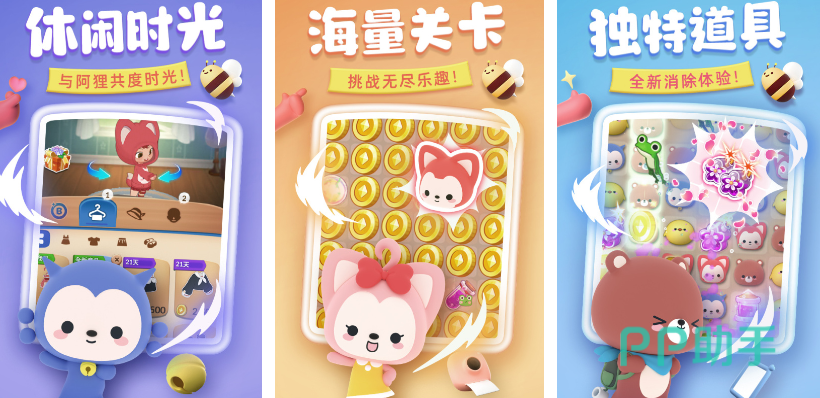 《完美消方块》是经过阿狸这个ip正版授权的方块游戏,玩法也是方块消除,需要将三个相同的方块挪到一起,而方块并不是单一只有颜色,每个方块上都有阿狸这个ip中的人物,所以玩的时候趣味性很强。除了消消乐玩法以外,你还可以和阿狸等伙伴没到魔法森林中冒险,而冒险过程还需要因为玩法较多,还比较考验大家的记忆里。