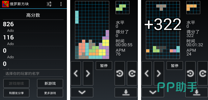 《俄罗斯方块》是目前为值最经典的一个方块游戏,大家玩的时候需要通过按钮来对方块进行摆放或者旋转,而游戏的最终目的就是消除得分。游戏画面简洁,还原了原本的俄罗斯方块模式,为了方便大家操作还设置了暂停、重新开始和分享等按钮,倘若觉得你是和朋友一起玩,还可以给朋友分享你每一关的得分和所用时间。