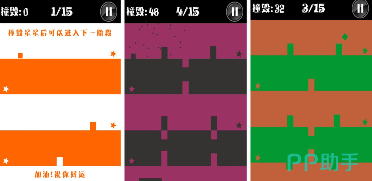 《方块求生》的玩法也特别刺激,你可以操纵一个小方块向前蹦跳,而向前冲刺的时候,道路上还会有很多凸起的障碍物和凹下去的坑,而你则必须要完全避开,才可以顺利撞到星星进入下一阶段。随着关卡的逐渐增多,方块前行的速度以及障碍物的密集程度也会增加,很多凸起的障碍物或者坑都会在想象不到的位置出现,想要挑战反应力的朋友,祝你好运!