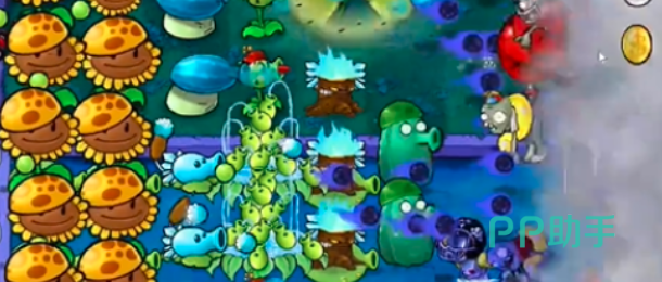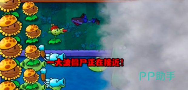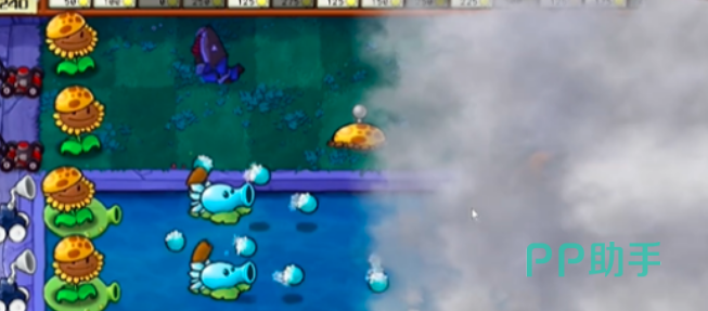 在这一关里小伙伴们的一半地图都被烟雾所掩盖,所以前面都是小伙伴们一定要尽快的把自己眼光积攒起来,先种向日葵,在向日葵还没种满的时候就已经有僵尸来袭,这个时候小伙伴们只需保留足够的寒冰射手阳光数量,直接在有僵尸的那条路上放置就行。