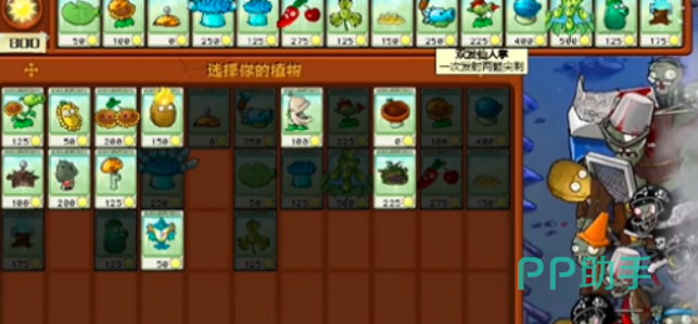 当小伙伴们每一排都有固定的武器帮助击灭僵尸的时候,就可以考虑开始种第二排向日葵了,至于第一批武器,除了豌豆射手之外,这里大家可以种双发仙人掌还有高兵菇。