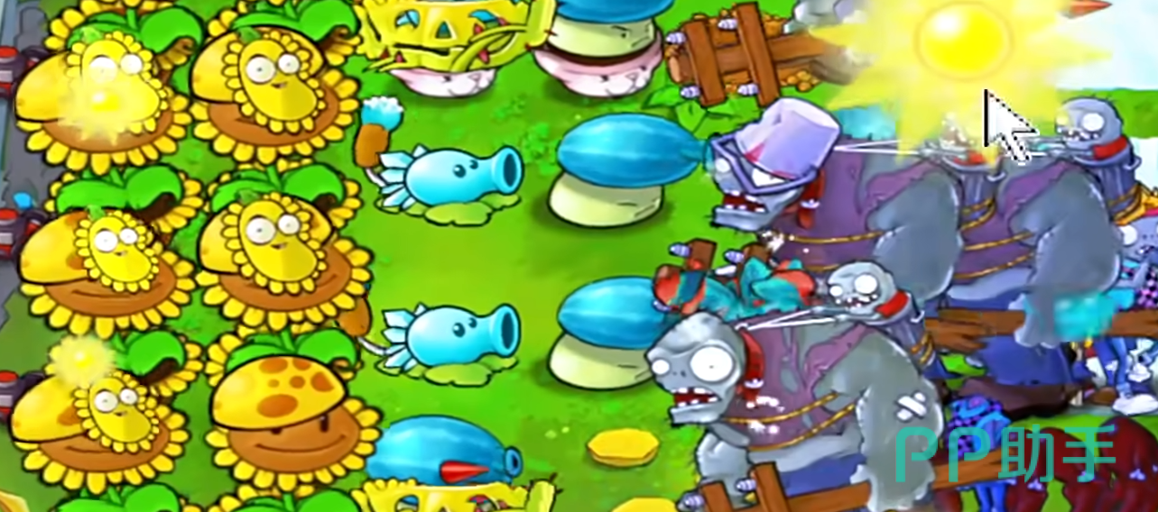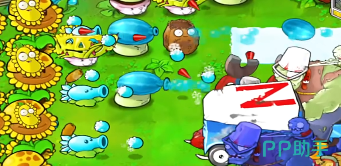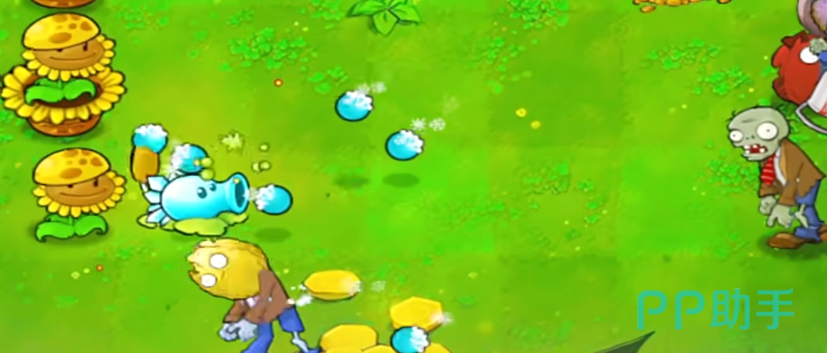 玩家们一开始可以放一个冰冻豌豆在第二条路上,因为坚果僵尸本身的的防御力很高,我们如果可以限制它的速度是最好的。因为冰冻豌豆可以多线作战,所以第四条路也可以非常得心应手的将其解决掉。