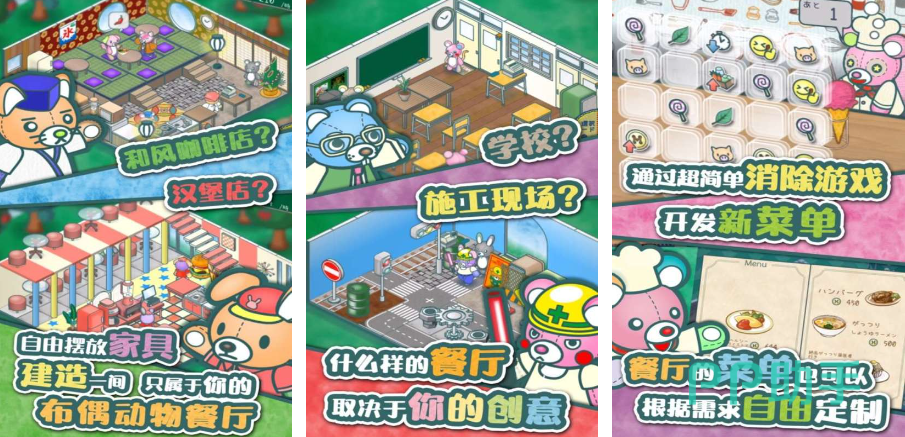 可爱的卡通风格、有趣的玩法、经营类玩法模式等,让小伙伴们仿佛进入到了童话世界。游戏的主要玩法是经营餐厅,餐厅的风格可以自由设计,在控制玩偶完成工作,将餐厅经营起来。里面提供的玩偶超级可爱,它们是游戏世界中的主角,玩家可带领喜欢的玩偶一起经营自己的餐厅,通过制作美味的食物招揽客人,获得丰厚的收益,让餐厅规模越来越大。