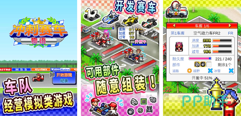 《冲刺赛车物语》是仅有的像素风赛车手游,游戏中你会扮演一个车队的队长,需要带领自己的车手去参加比赛,拉赞助赢大奖,是一款融合了车队经营和竞技的赛车游戏。游戏可以开发赛车,根据赛车的性能,比如速度和耐久度自由改装更换零部件。与其他同类型游戏相比,最大的特点就是支持画面旋转和大小缩放,如果比赛过程中觉得比例不对不好操作,还可以使用双指放大或者缩小屏幕!