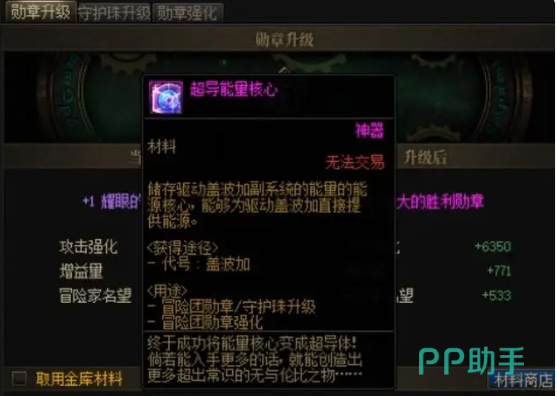 勋章升级材料名叫超导能量核心。第一种获得这种材料的方法是打代号盖波加这个任务。这个任务没有时间限制,全天都能接取这个任务。但对玩家等级有很高的要求,角色等级至少要有110级。每次成功通关关卡至少可以获得4个升级材料,十分不错。