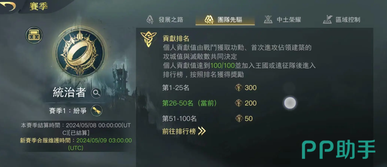 如果你参与团队比赛的话,那边会根据团队的整体排名来决定,你能够获得多少赛季货币。并且与你的贡献也有关,排名越靠前的奖励越丰厚。当你成功登顶赛季排行榜之后,还会将你的名字以及其他信息,显示在荣耀榜上。