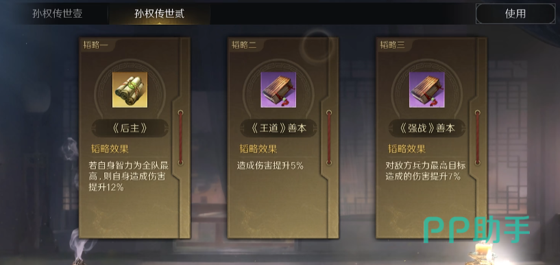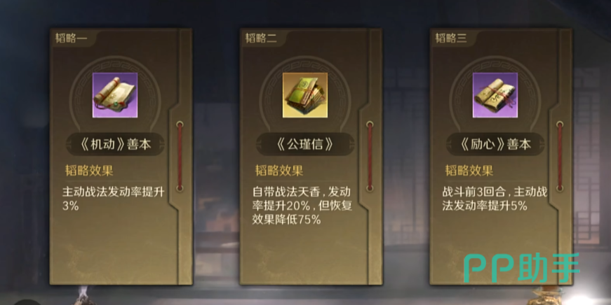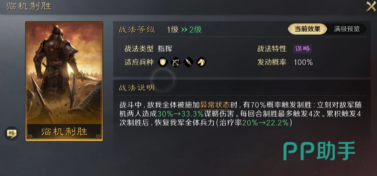 “运筹帷幄”则是作为“上智为间”的下位替代,可以降低敌方属性,挺不错的辅助战法。以上都没有的话也可以拿其它的可以打群体异常的战法或者是辅助增伤减伤类的替代都可以。