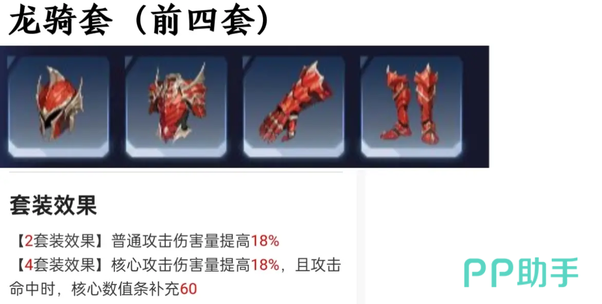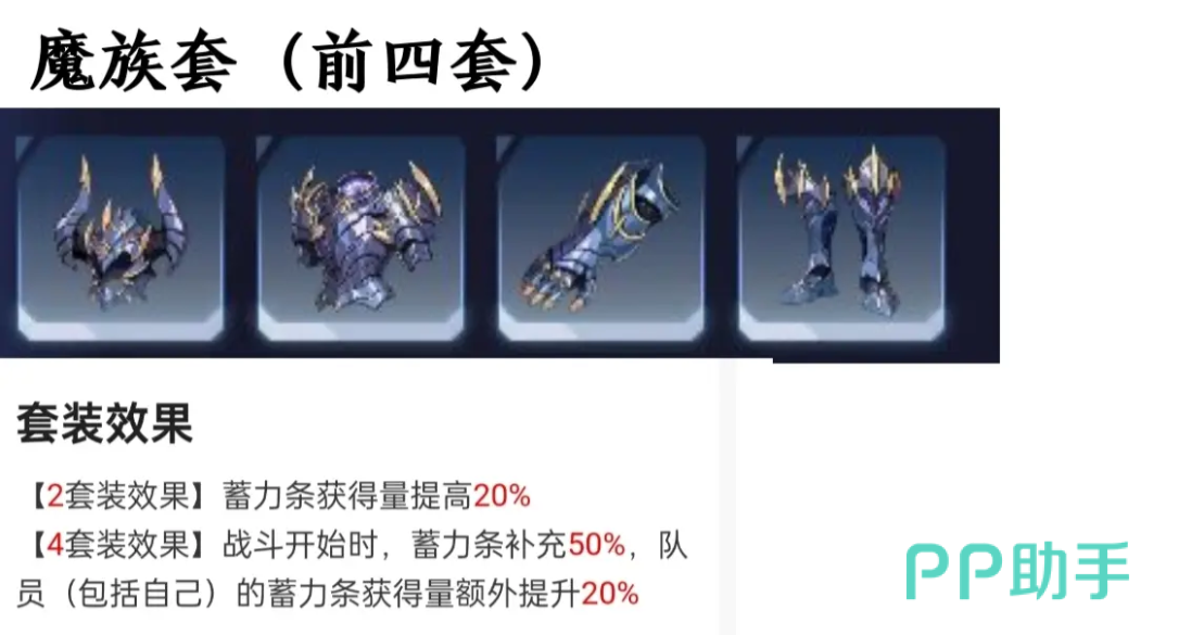 最后就是特殊类的制品,这类制品以攻击和蓄力为主,魔族套装可以提升蓄力的时间,这样一些依靠蓄力攻击的角色就能短时间打出技能,缩短整体的战斗时间以及速度,然后就是龙骑套,这个套装能直接强化普通攻击的倍率,而且还能提高核心攻击的充能效率,属于特化类的制品,需要根据指定角色才能发挥出完全的功效。