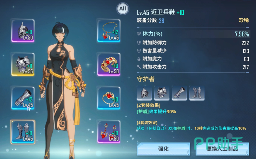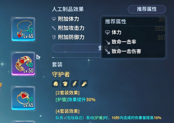 徐志宇在游戏中的品级是SSR,玩家们在培养她时常常会有一个误区,那就是因为她的详情页中有一个盾的标志,所以就将她作为肉盾角色培养。但实际上这个盾只是对徐志宇属性的体现,她的推荐属性是体力,所有技能的伤害数值也都是以具体体力数值为基础进行计算的,因此玩家们不需要将徐志宇当作一名防御类型角色去培养,人工饰品也可以考虑多选择能够提供体力加成的物品。武器方面,徐志宇最适配的当然是专用猎人武器,可以为她提供5%的致命一击伤害量,在她使用技能时,致命伤害量提高1%,至多叠加20层。在前期没有专武的情况下,可以从能够提高12%蓄力条获得量和体力的古代魔导书以及带来体力和使用技能时4.5%蓄力条提升的钢铁魔杖之间选择。